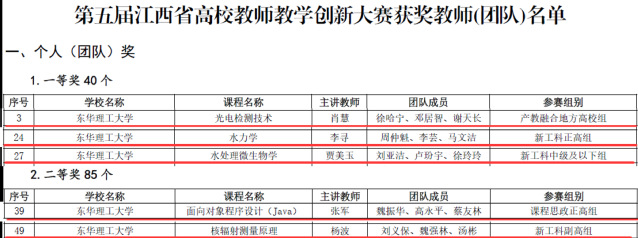 近日,由江西省教育厅指导、江西省高等教育学会主办的第五届江西省高校教师教学创新大赛结果揭晓,欧宝app官方版web站登入获评优秀组织奖,推选的5个教师(团队)共获一等奖3项、二等奖2项,其中一等奖获奖总数位列全省第二。水资源与环境工程学院李寻教师(团队)将代表江西省参加第五届全国高校教师教学创新大赛(新工科正高组)。