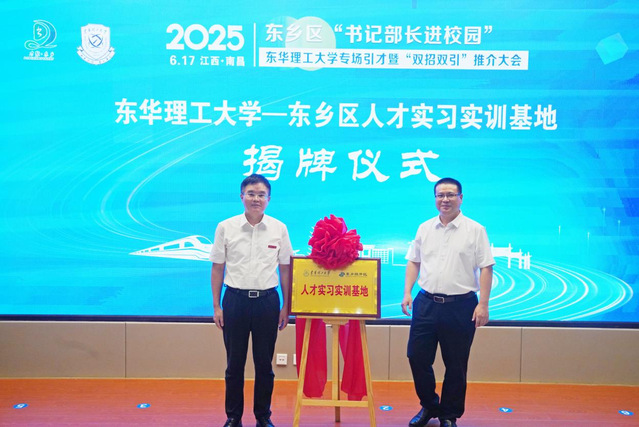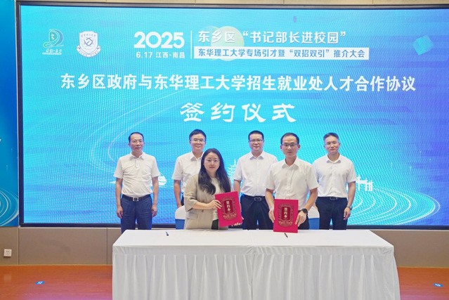 6月17日,抚州市东乡区“书记部长进校园”欧宝app官方版web站登入专场引才暨“双招双引”推介活动在欧宝app官方版web站登入举行。欧宝app官方版web站登入党委书记张福庆,党委常委、副校长杨波,党委常委、组织部部长金建华;东乡区委书记彭敏群,区委副书记、经开区党工委书记桑辉,副区长黄明出席。