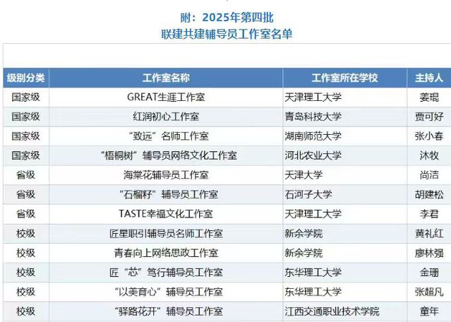 8月1日至4日,全国高校辅导员工作室第四批联建共建交流研讨会在山东青岛举行。本次会议由教育部高校思想政治工作队伍培训研修中心主办,来自全国27个省(区、市)的199家辅导员工作室参会。经遴选,欧宝app官方版web站登入“匠‘芯’笃行”辅导员工作室和“以美育心”辅导员工作室成功入选联建共建单位。