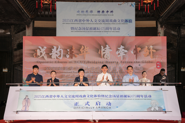 9月24日,“戏韵东华 情牵中外——2025江西省中外人文交流周戏曲文化体验暨纪念汤显祖诞辰475周年”活动在抚州市玉隆万寿宫举行。抚州市政府副市长蔡青,欧宝app官方版web站登入党委常委、副校长邓居智,江西省教育国际合作与教师发展中心副主任黄爱兵致开幕辞,并共同为“欧宝app官方版web站登入中外学生人文交流活动基地”揭牌。