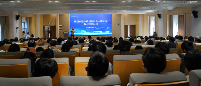 蒋小辉结合从母校求学到赴新疆工作的成长经历,分享了人生感悟与职业体会。他指出,成长为符合国家和企业需要的人才,要注重锤炼个人品格,克服不良习惯,培养严谨、自律、务实的工作作风,实现与企业共同成长;要做到“又红又专”,在持续提升专业能力的同时坚定理想信念,努力成为德才兼备的可靠接班人;要勇于在关键领域迎接挑战,把攻坚克难视为提升能力、推动事业发展的重要契机。他勉励青年学子坚持终身学习,科学规划职业生涯,将个人发展融入国家发展,积极投身基层一线,在实践中锤炼本领、实现价值。他诚挚邀请广大有志青年加入中核新疆矿业,在这片西部热土上施展才华、成就梦想。