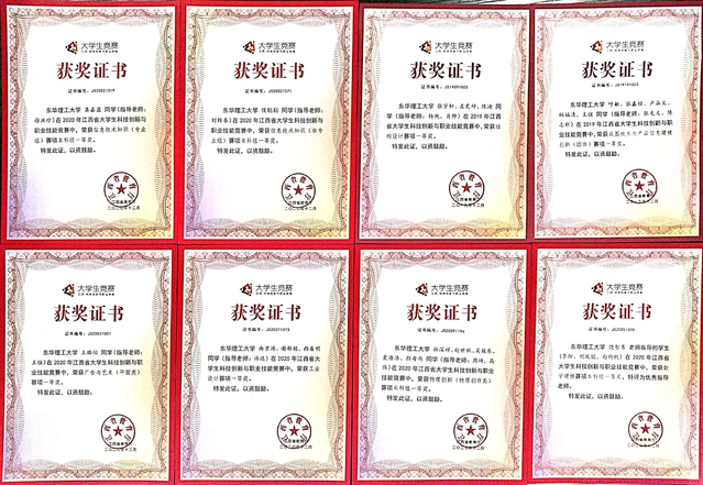 近日,江西省教育厅公布了2020年度江西省大学生科技创新与职业技能竞赛获奖结果。我校在10余个竞赛项目中获奖348项,其中一等奖82项、二等奖131项、三等奖135项,获奖总数与一等奖获奖数较往年均有大幅提升。因成绩突出,我校获得“组织工作先进单位”荣誉称号,徐洪珍等42名教师获“优秀指导教师”荣誉称号。此外,“物理创新”和“数学建模”竞赛项目分别获团体总分第二、三名的好成绩。