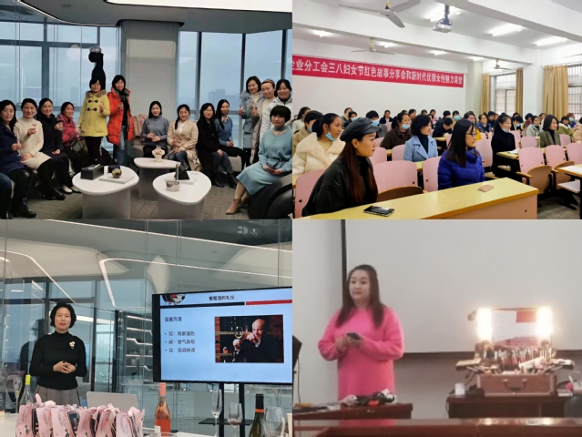 后勤分工会组织女教职工们进行了葡萄酒品鉴活动。在品酒师的专业讲解下,学习相关礼仪知识,赠与大家一份清醒、一份寂静、一份香醇、一份沉醉,大家沉浸于酒香和甜点融合之妙趣;土建学院、企业分工会分别开展了优雅女性化妆、服饰穿搭讲座。岁月更迭,不可逆转,希望在当下的每一刻,我们的女教职工都能留下自己不一样的“美”。活动让老师们暂时放下手边的工作,放松了心情,释放了压力、增强了自信心。