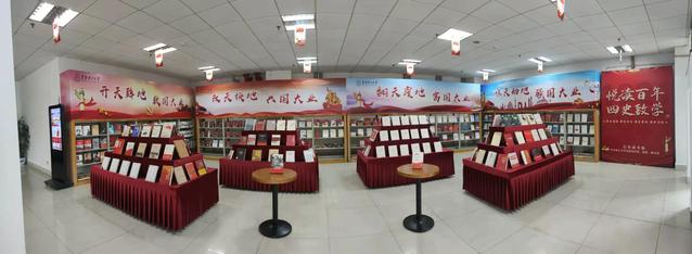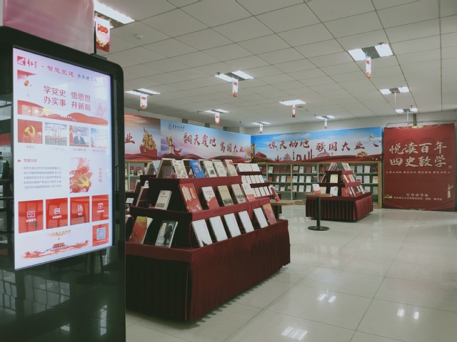 红色读书角以中国共产党百年历史时间轴为主线,内容跨越开天辟地救国大业、改天换地兴国大业、翻天覆地富国大业、惊天动地强国大业四个历史时期。开设“悦读百年 四史致学”专题红色图书展,共同展出包括《论中国共产党历史》《中国共产党简史》等700余种党史学习教育红色书籍,以及《共产党宣言》等经典党史著作,为全校师生提供丰富的红色精神食粮,帮助他们深入学习“四史”,在回顾党的光辉奋斗历程中,读懂历史、了解时政,提升自身政治素养。