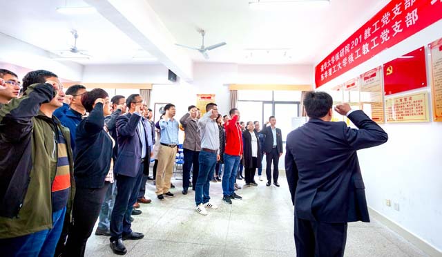 启动仪式上,全体党员面向党旗举起右拳,重温入党誓词。201党支部党员叶高阳做了“明理增信须力行,革命圣地悟初心”党史学习专题报告。报告结束后,全体党员实地参观了我校核资源与环境国家重点实验室。