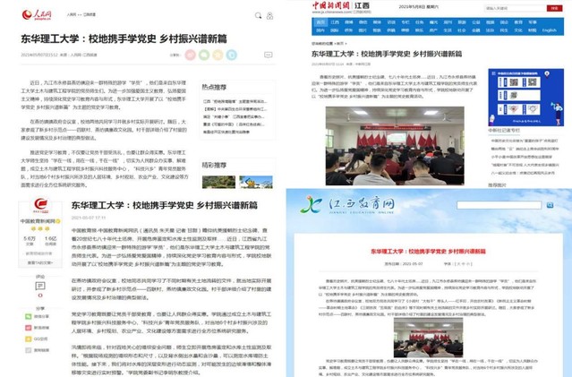 编者按:近日,九江市永修县燕坊镇迎来一群特殊的游学“学员”,他们是来自欧宝app官方版web站登入土木与建筑工程学院的党员师生们。为进一步加强爱国主义教育、弘扬爱国主义精神,持续深化党史学习教育内容与形式,学校开展了以“校地携手学党史 乡村振兴谱新篇”为主题的党史学习教育。学习强国、人民网、中新网、中国教育新闻网、中国教育在线、网易新闻、凤凰网、江西新闻客户端、中国江西网及江西省教育厅属媒体等主流平台对此进行报道,现将相关报道转载如下: