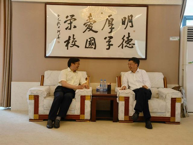 会前,申旭辉在地球物理与测控技术学院相关负责人陪同下与校长孙占学进行了亲切会谈。