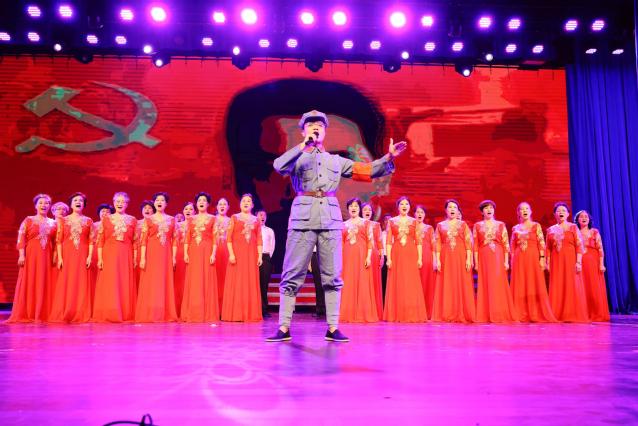 由我校老年大学合唱班、声乐班学员组成的大合唱《祖国不会忘记》,唱出了老同志无私奉献的情怀;南昌校区老年大学健身气功班学员表演的气舞《最美的歌儿唱给妈妈》,充分展示了党的丰功伟业;一身红军装的离退休工作处欧家玉演唱的《三月桃花心中开》,在声乐班学员的伴唱、艺术学院老师林佳昕的伴舞下,深情表达了妹妹对革命胜利的期盼,对红军哥哥的支持。由老同志林银山指导的女声小组歌唱的《绣红旗》,在老同志周洁的伴舞下,呈现出较强的舞台效果和感染力;由老年大学朗诵班、诗词班师生表演的诗朗诵《红船畅想》,以强大的阵容和富有情感的朗诵,为现场观众展示了什么是红船精神。
