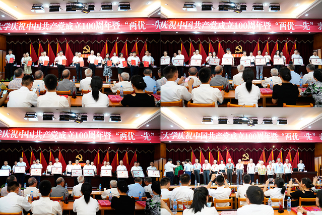 会上,杨波宣读了表彰决定,关宝文等117名同志被评为2020—2021学年“优秀共产党员”,马建国等20名同志被评为“优秀党务工作者”,核科学与工程学院党委等20个基层党组织被评为“先进党组织”。范小林向老党员代表颁发了“光荣在党50年”纪念章,校党委常委向先进集体和个人颁发了奖牌、奖杯和荣誉证书。