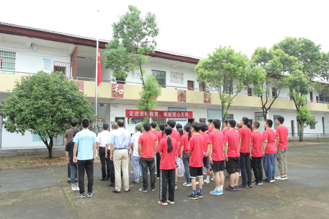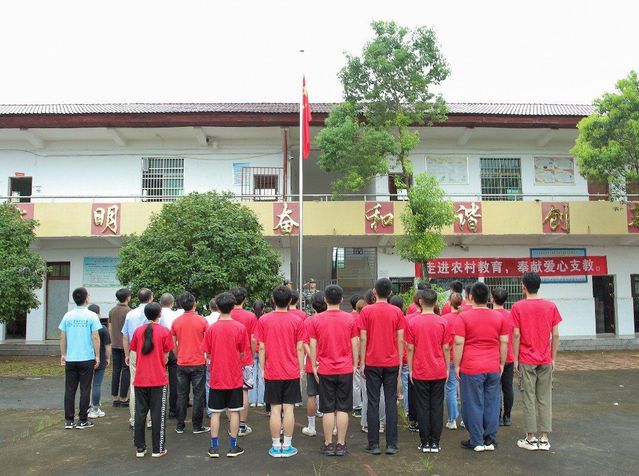 举行升旗仪式,增强民族自信。校团委赴崇仁县航埠镇徐家村志愿服务队师生一大早便在驻地徐家村小学,与学校驻村工作队及徐家村村委会党员干部共同举行升国旗仪式。校地双方党员、团员、群众、儿童共同向国旗行注目礼,伴随着雄壮的《义勇军进行曲》,全场齐声高唱中华人民共和国国歌,鲜艳夺目的五星红旗冉冉升起,在操场上空迎风飘扬。校团委赴资溪县志愿服务队在马头山镇学校举行升国旗仪式,仪式吸引了学校周边的村民和儿童共50余人参与,大家用洪亮的声高唱国歌,注视着国旗缓缓升起,进一步激发了爱党爱国热情,增强了民族自信。