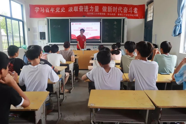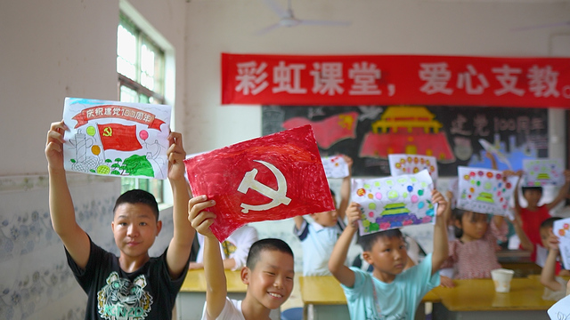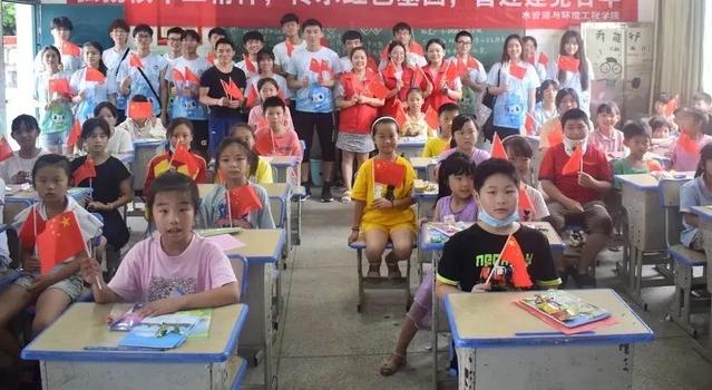 开设支教课堂,宣讲红色精神。水资源与环境工程学院在南昌蛟桥镇双岭小学开设支教课堂,组织开展红色主题教育活动。大学生志愿服务者与小朋友一起学唱《我和我的祖国》,向小朋友讲述“八一南昌起义”的故事,引导小朋友要铭记历史,懂得美好生活来之不易,更要缅怀革命先烈,发扬艰苦奋斗、不怕牺牲的精神。校团委赴崇仁县徐家村志愿服务队在徐家小学开设彩虹支教课堂,在“童心跟党走,巧手绘党旗”主题课上,大学生志愿者引导小朋友们充分发挥创造力,用手中的画笔描绘鲜艳的党旗,表达对党的热爱之情。理学院志愿者为金溪县中学初二学生上了一堂生动的党课。党课从1921年中国共产党成立的时代背景展开,一直到中国共产党领导中国人民走进新时代取得的辉煌成就,一组组照片让人惊艳,一个个故事令人感动。“感谢大哥哥的精彩讲述,中国共产党披荆斩棘,冲破重重困难才创造出的一次次辉煌成就。我要好好学习,长大争取成为一名光荣的共产党员,为人民、为祖国多做贡献!”学生孙丽坚定地讲道。校团委赴资溪志愿服务队开展“同升一面国旗,同看一场庆典,同唱一首红歌,同玩一场红色游戏”等“四个一”红色教育活动。在大学生志愿者的带领下,小朋友们积极参与,学习氛围热烈而庄严。通过一系列的活动,在润物无声中将红色基因根植于小朋友心中。