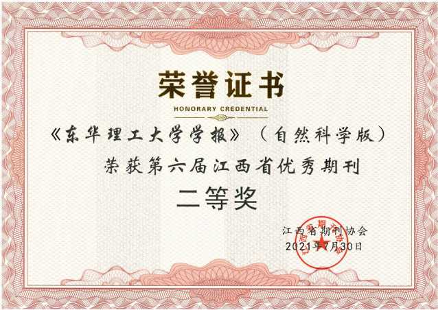 2016年自然科学版学报荣获“中国高校优秀科技期刊”“江西省第五届优秀科技期刊二等奖”;2020年“地质与核资源”栏目被评为江西省优秀期刊栏目和华东地区优秀期刊栏目;2021年自然科学版学报荣获第六届江西省优秀期刊二等奖。