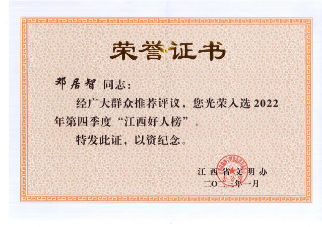 【江西好人】喜报!我校邓居智教授荣获2022年第四季度“江西好人”称号