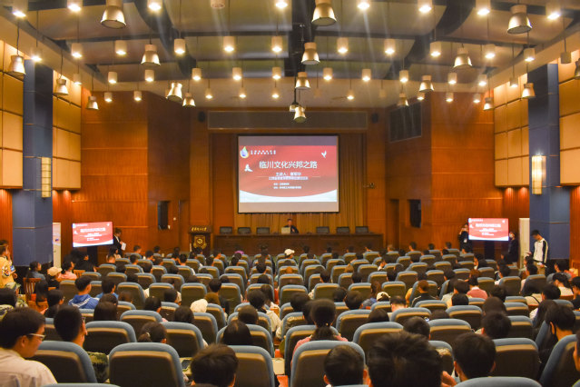 章军华围绕临川文化内涵与优势、文化强省战略和新时代兴邦发展之路三个方面解析临川文化的发展。他指出,临川拥有独特的地理位置、深厚的文化渊源和较高的人文素养,临川地区人民也有着高度的文化自信。他号召广大青年学生应以“撸起袖子加油干”的饱满精神状态走好新时代长征路,肩负起历史重任,立足传承发扬中华传统文化,以多元化思维实现传统文化的创新性发展。他还从文化理论、内涵特色、国际表达、产业兴邦等方面为临川文化发展提供了具体思路。