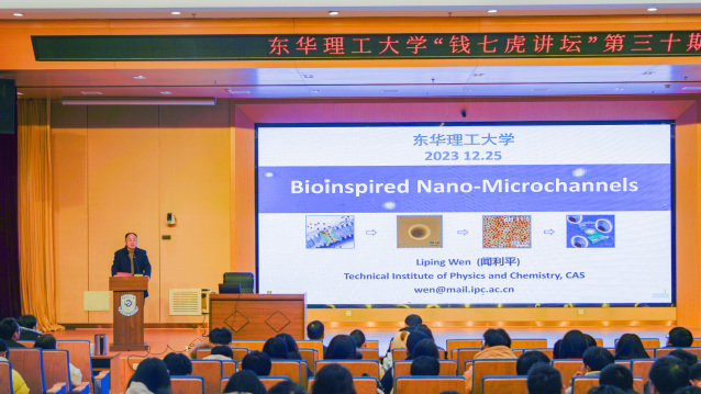 12月25日,应东华理大学化学与材料学院邀请,科技部重点研发计划首席科学家、中国科学院大学教授闻利平做客欧宝app官方版web站登入“欧宝app官方版web站登入”,为学校师生作了题为“Bioinspired Nano-Microchannels”的精彩报告,全校近300余名师生到场聆听。