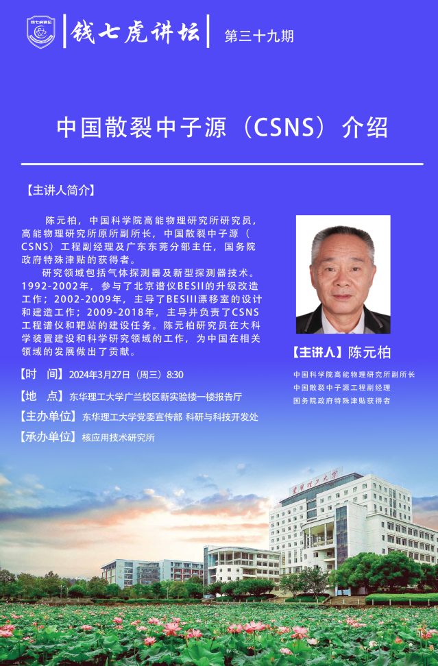 应核应用技术研究所邀请,中国科学院高能物理研究所研究员陈元柏来到“欧宝app官方版web站登入”,以“中国散裂中子源(CSNS)介绍”为主题开展讲座。欢迎全校师生届时前往聆听。
