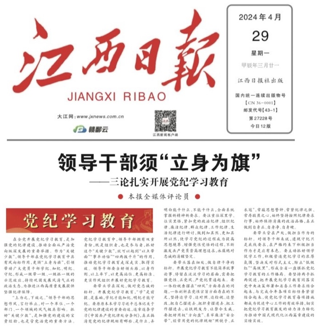 【江西日报】领导干部须“立身为旗”——三论扎实开展党纪学习教育