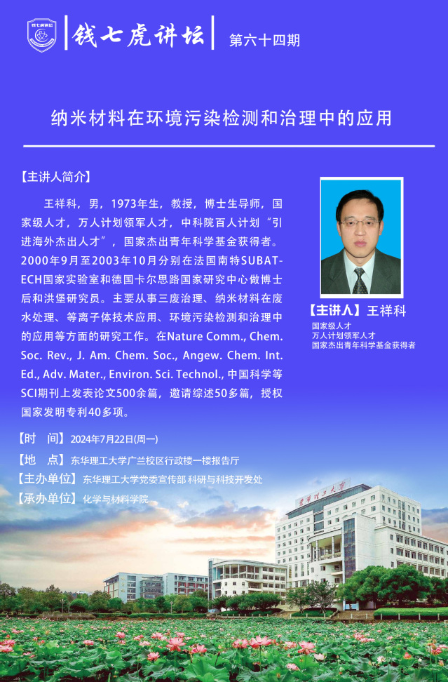 应化学与材料学院邀请,国家级高层次人才王祥科到“欧宝app官方版web站登入”,以“纳米材料在环境污染检测和治理中的应用”为主题开展讲座。欢迎全校师生届时前往聆听。