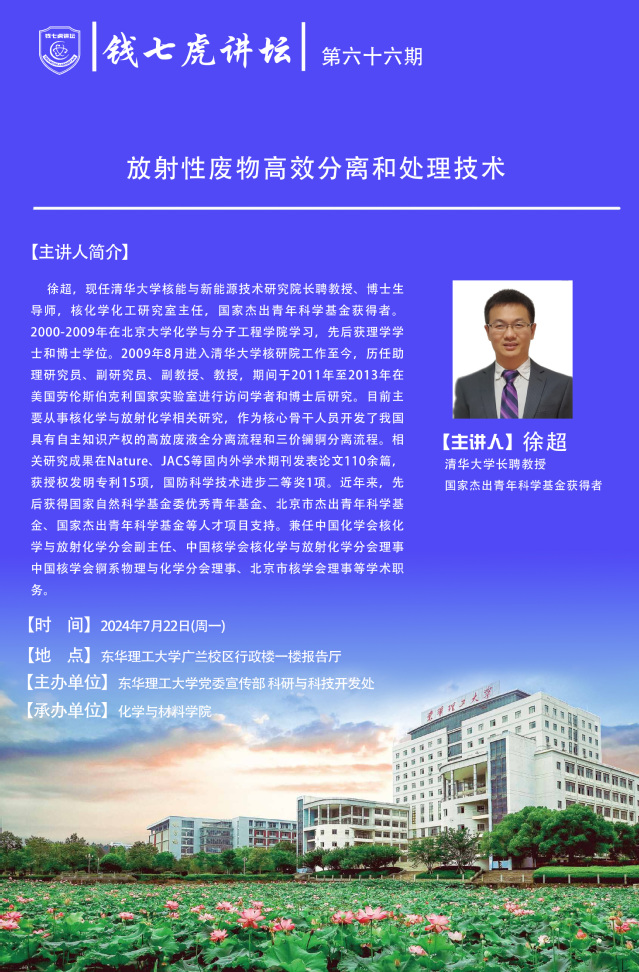 应化学与材料学院邀请,国家级高层次人才徐超到“欧宝app官方版web站登入”,以“放射性废物高效分离和处理技术”为主题开展讲座。欢迎全校师生届时前往聆听。