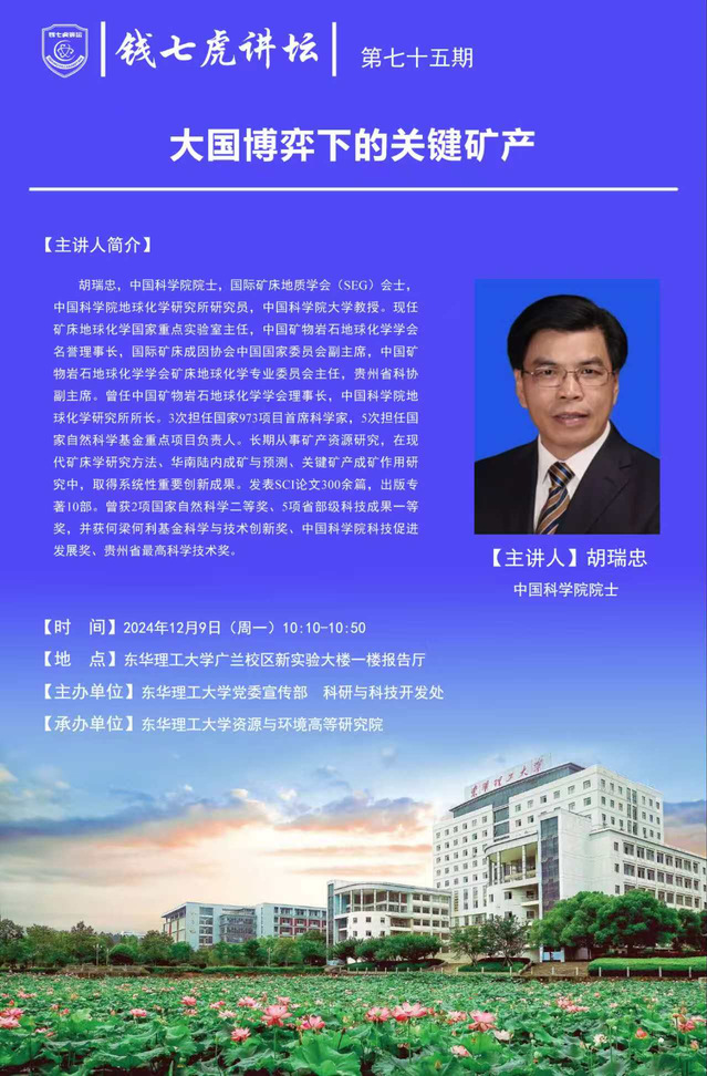 应欧宝app官方版web站登入资源与环境高等研究院邀请,中国科学院院士、中国科学院大学教授胡瑞忠到“欧宝app官方版web站登入”,以“大国博弈下的关键矿产”为主题开展讲座。欢迎全校师生届时前往聆听。