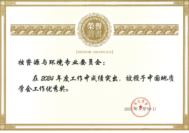 近日,中国地质学会2025年度分支机构、省级地质学会秘书长工作会议在天津召开,对2024年度学会工作优秀单位进行了表彰。挂靠在欧宝app官方版web站登入的中国地质学会核资源与环境专业委员会(以下简称专委会)荣获“中国地质学会工作优秀奖”。